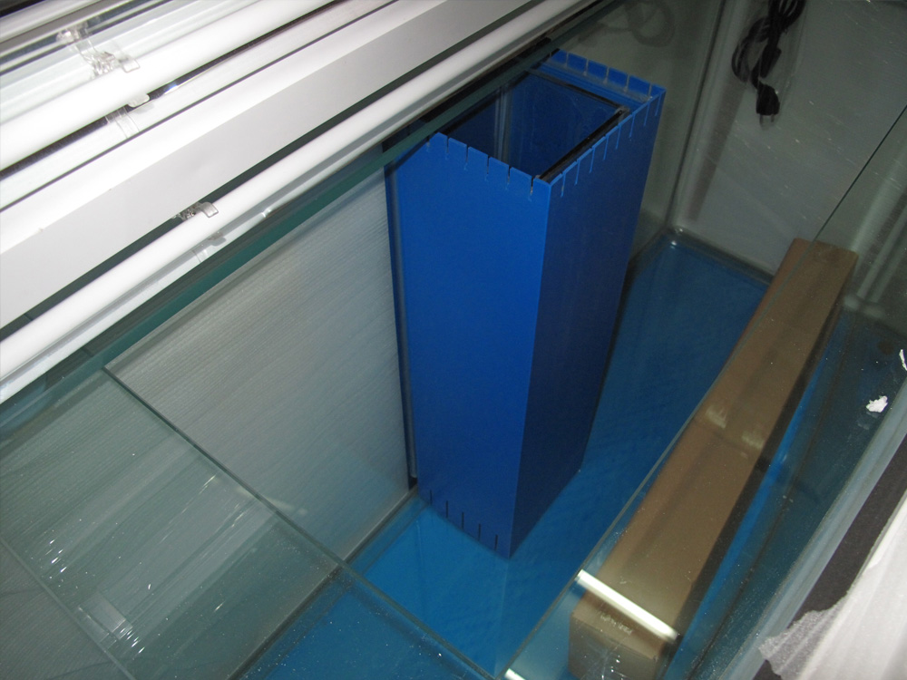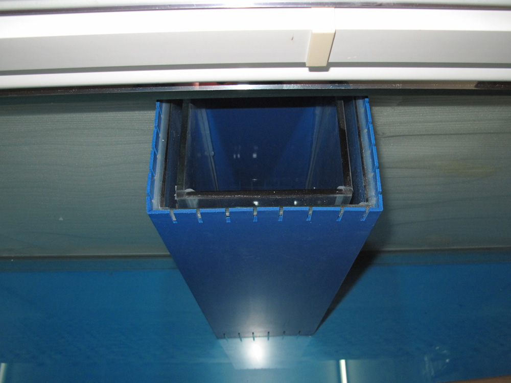 Der Glaskörper hat ebenfalls oberhalb der Wasserlinie zwei verdeckte Löcher, um Stromkabel der Beleuchtung herauszuleiten.